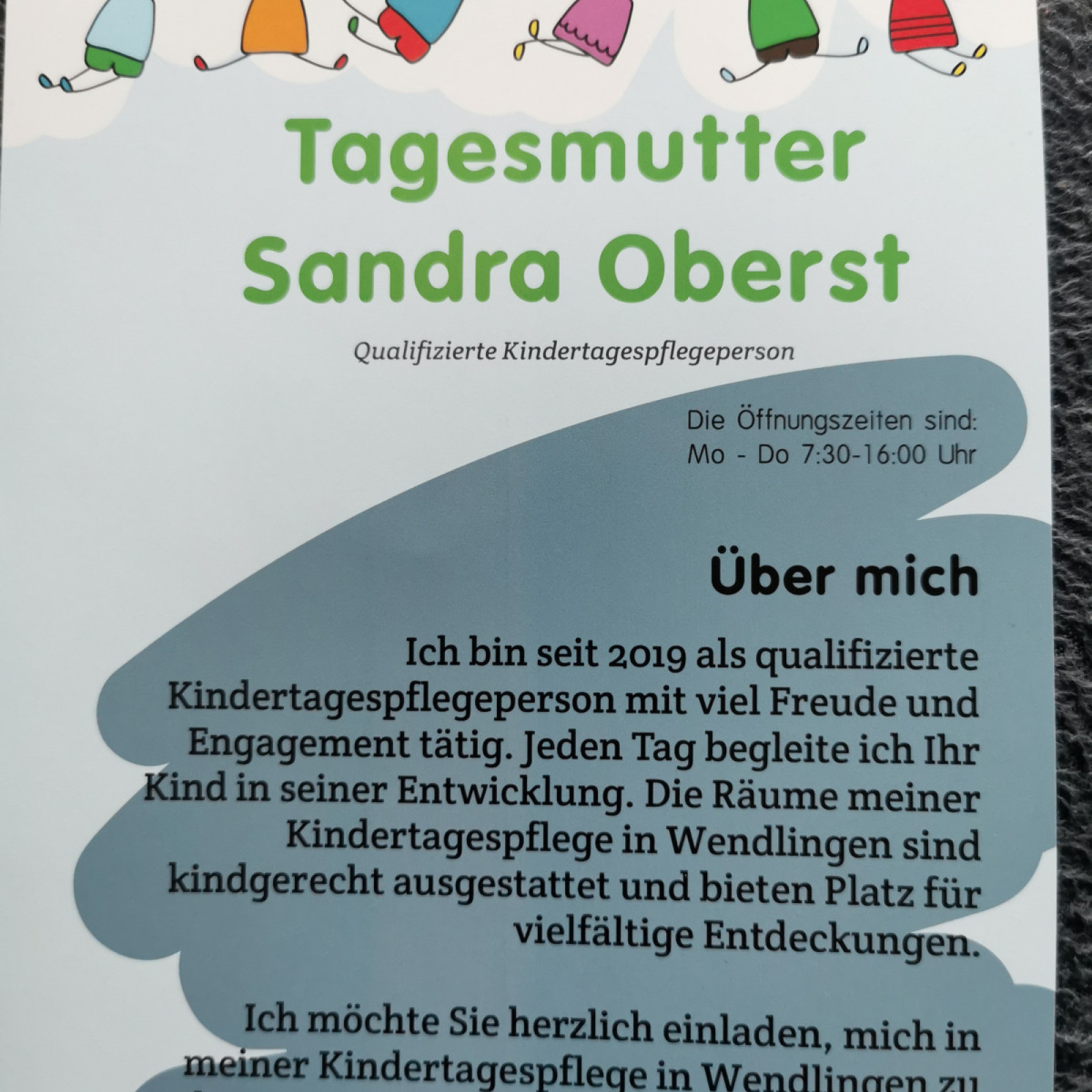 Sie benötigen weniger Stunden? Lassen sie sich auf meine Warteliste setzen, wenn eine passende Gegenanfrage da ist, würde auch eine Betreuung zu Stande kommen. Bitte auf dem Kennlernbogen die genauen Wochentage dazu schreiben.